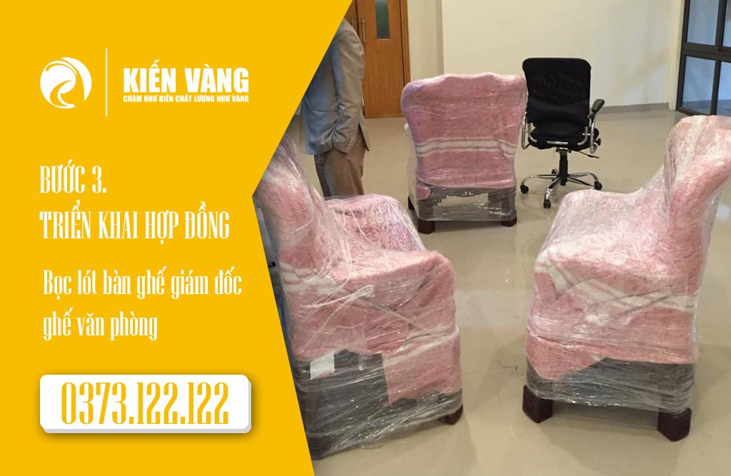 Bàn ghế giám đốc, ghế phòng họp được đóng gói tỉ mỉ bằng nhiều lớp PE, xốp bóp nổ, chăn dạ, màng PE đảm bảo an toàn tuyệt đối.