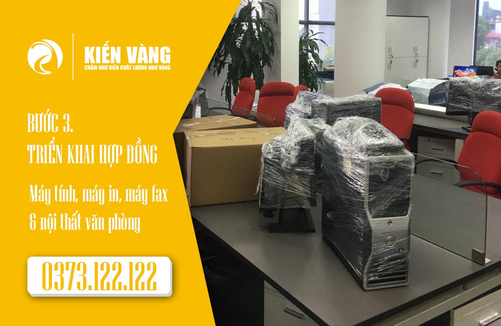 Sau khi ký kết hợp đồng, Kiến Vàng sẽ lên phương án vận chuyển văn phòng đầy đủ và chi tiết về thời gian về nhân sự về phối hợp giữa Kiến Vàng và quý công ty đảm bảo việc chuyển văn phòng diễn ra nhanh chóng và an toàn.